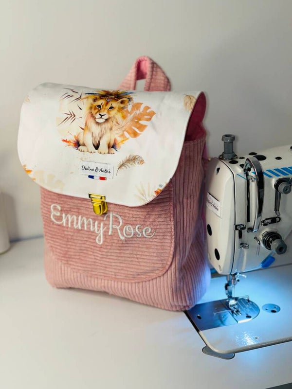 Tissus velours côtelé, intérieur tissu coton oeko-tex premium. Rabat Lionceau / velours rose