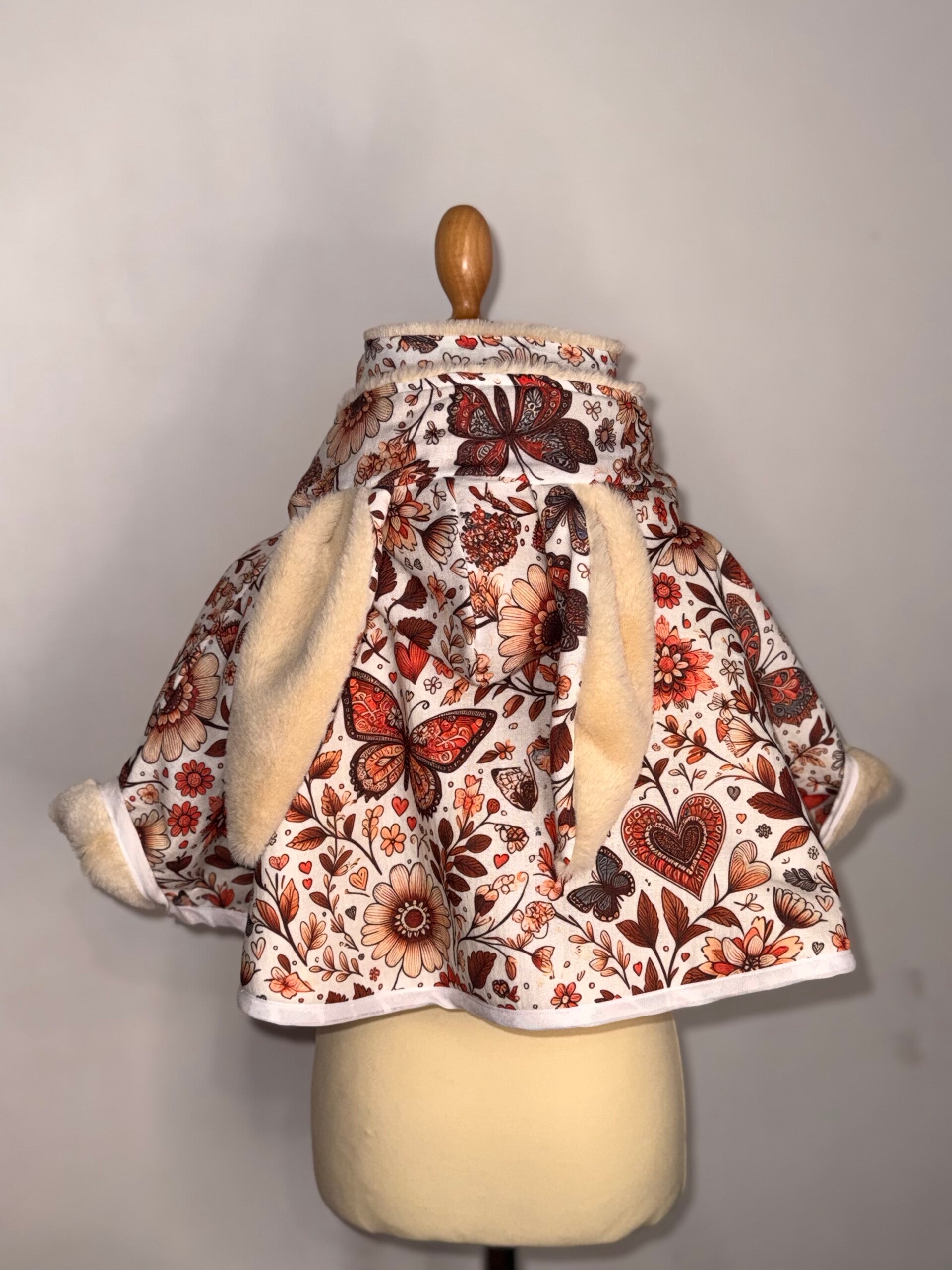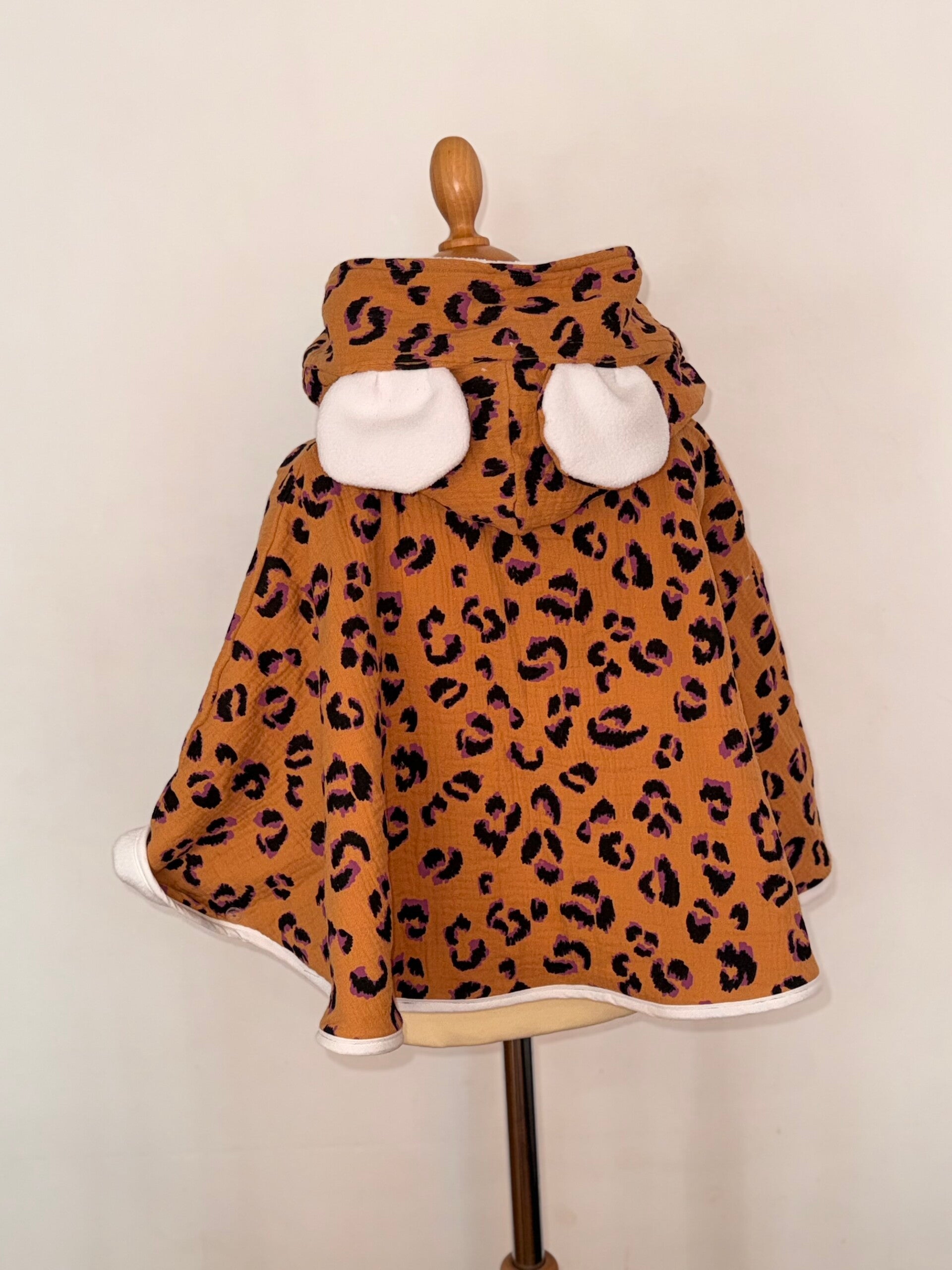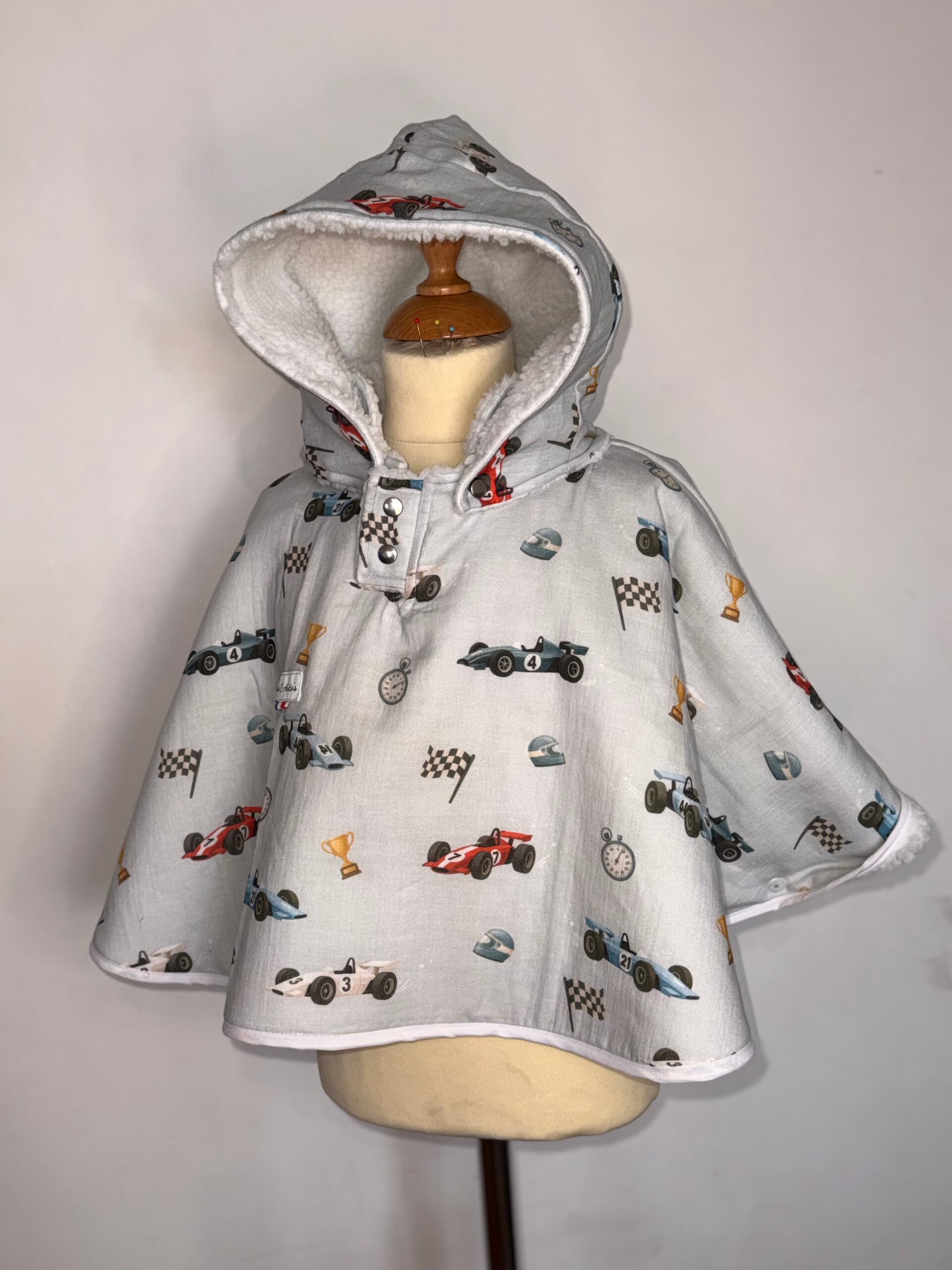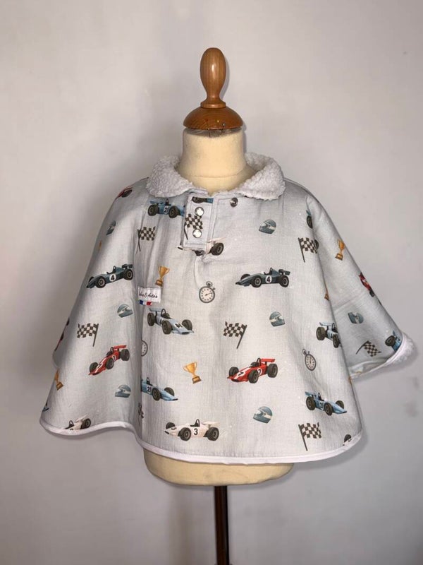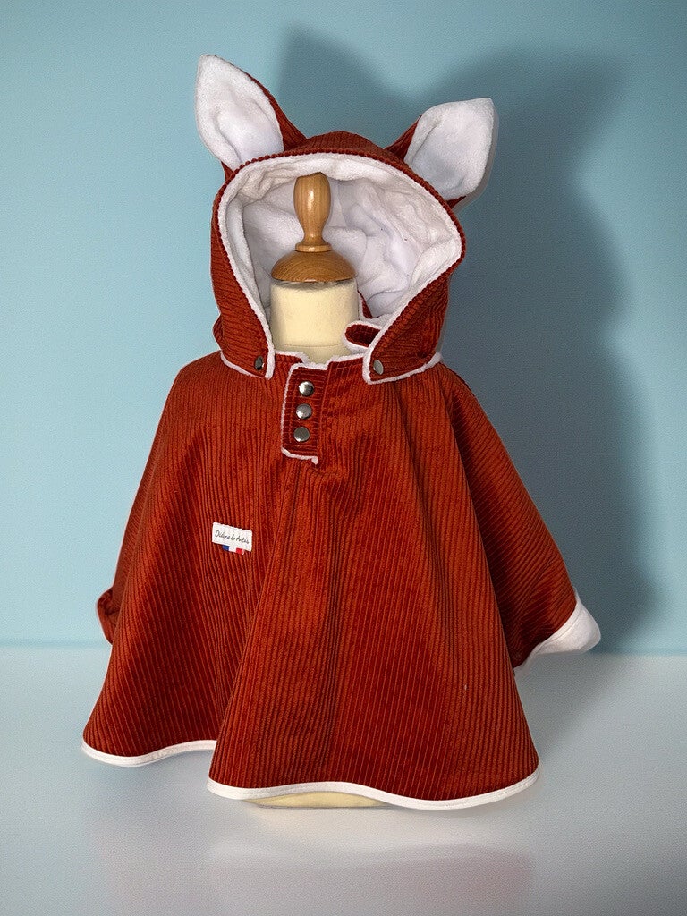 Le poncho est constitué d’une face en imperméable, et d’une face intérieure en fausse fourrure de mouton ou polaire connue pour tenir chaud (bien moelleuse, mais ne passe pas au sèche-linge), ou en tissu minky (Un peu moins chaud que la fausse fourrure. Le modèle est confectionné avec une maxi capuche, pour bien abriter votre enfant lorsqu’il pleut (ou qu’il neige !)