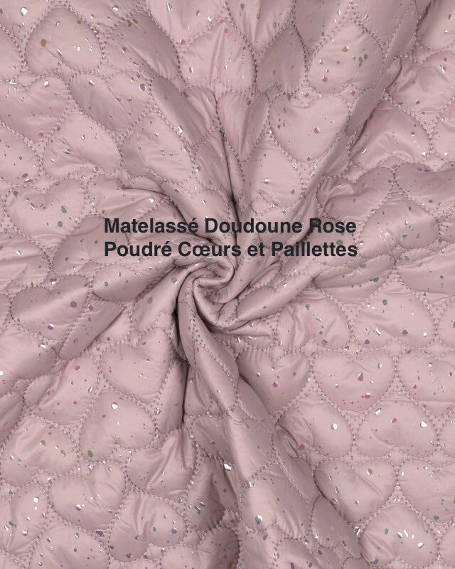 Tissu Matelassé Doudoune Rose Poudré Cœurs et Paillettes