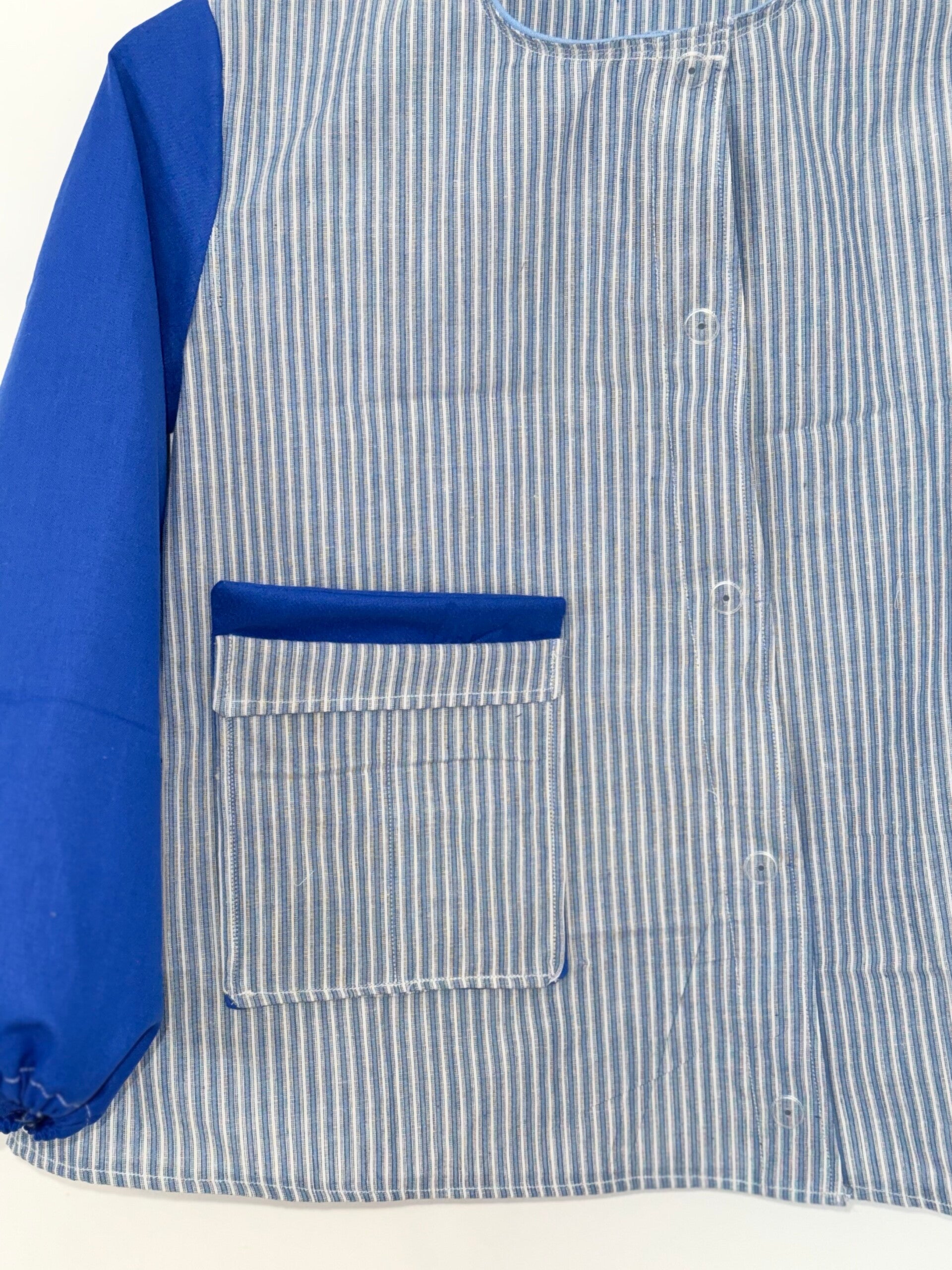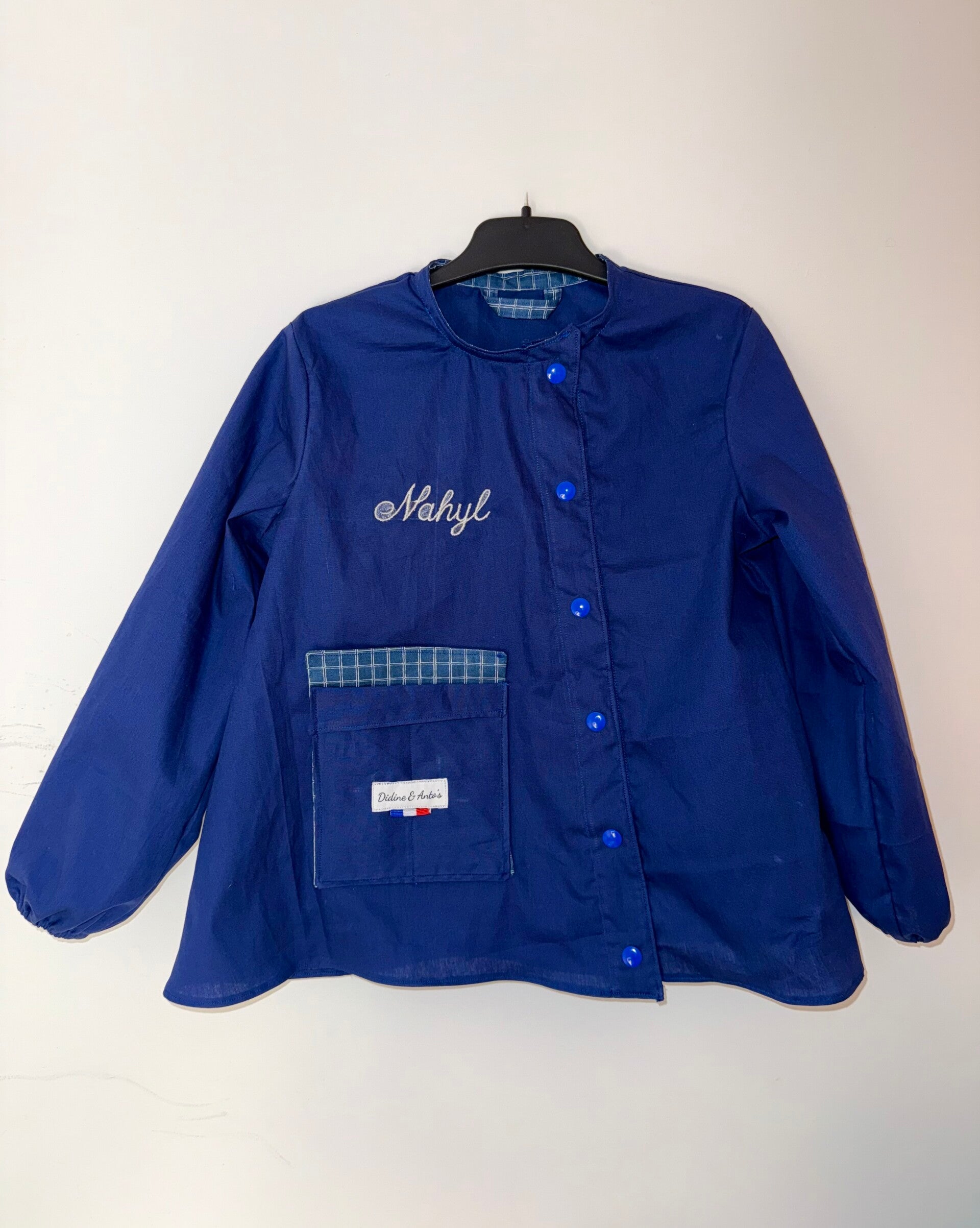 Broderie facultative : possibilité de personnaliser le tablier / blouse d'école au prénom et/ou nom de l'enfant. Prévoir 4 à 7 jours .