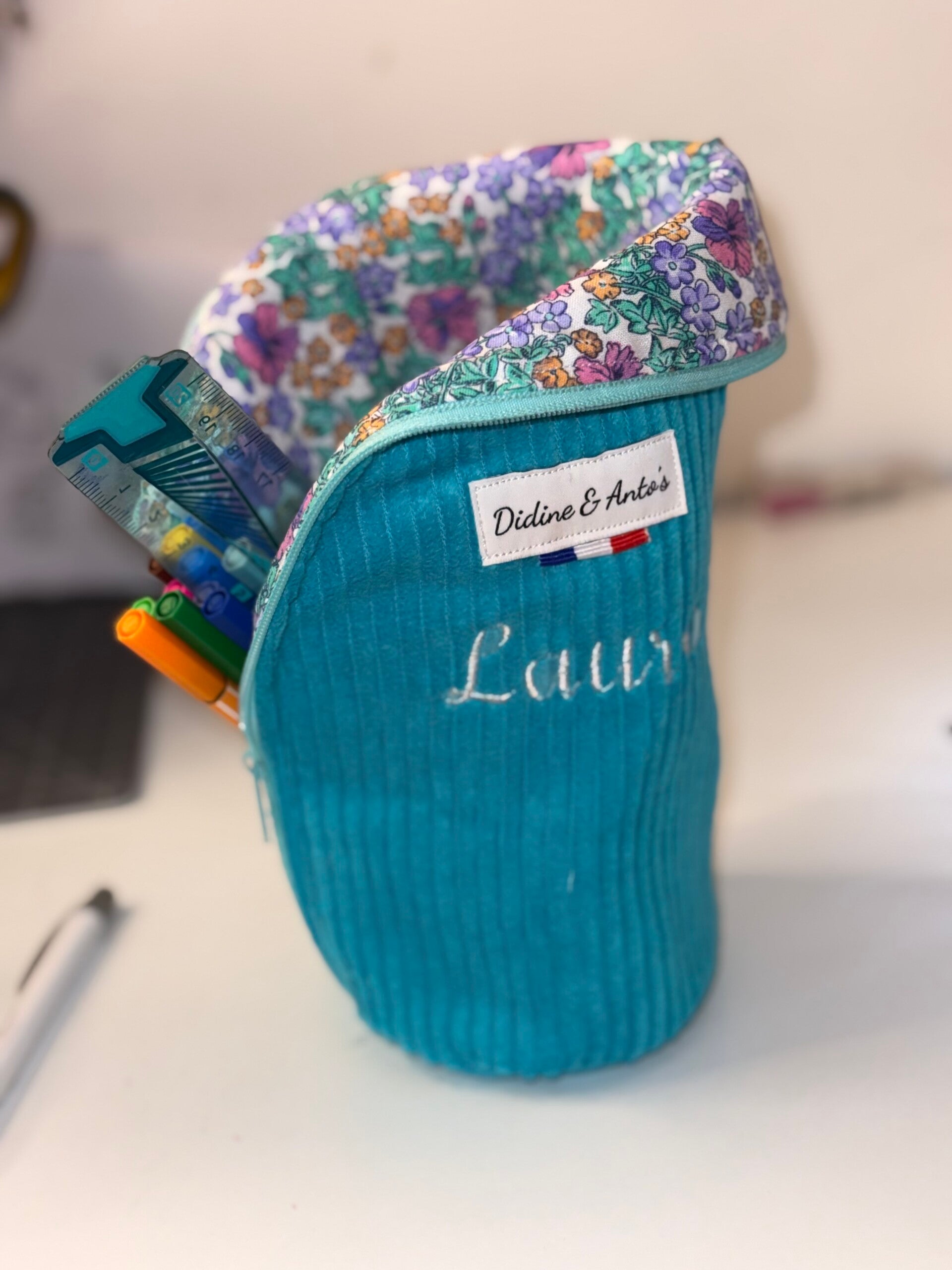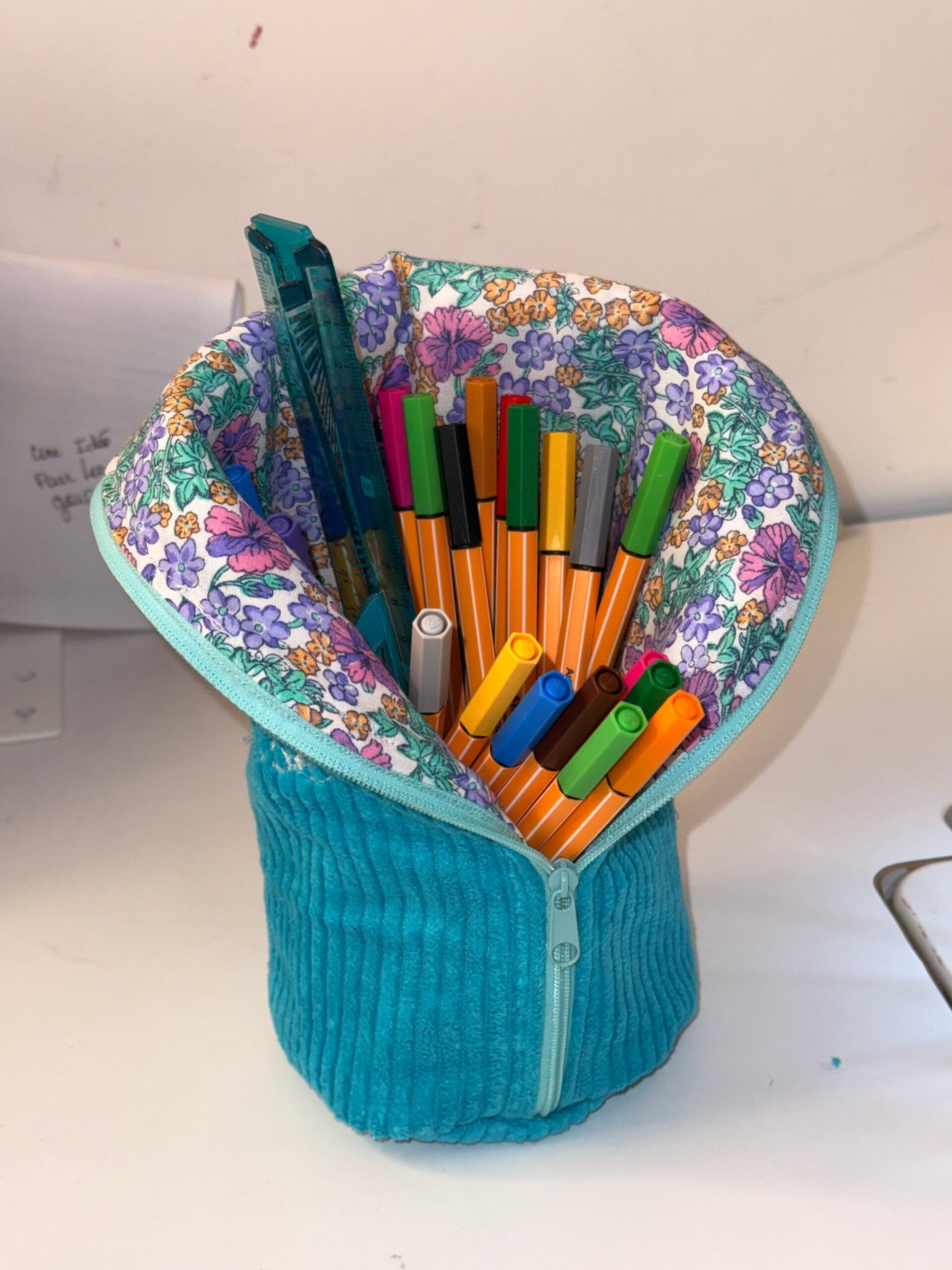 Trousse pot qui se tient à la verticale tout comme un pot, plus facile à retrouver le crayon souhaité.