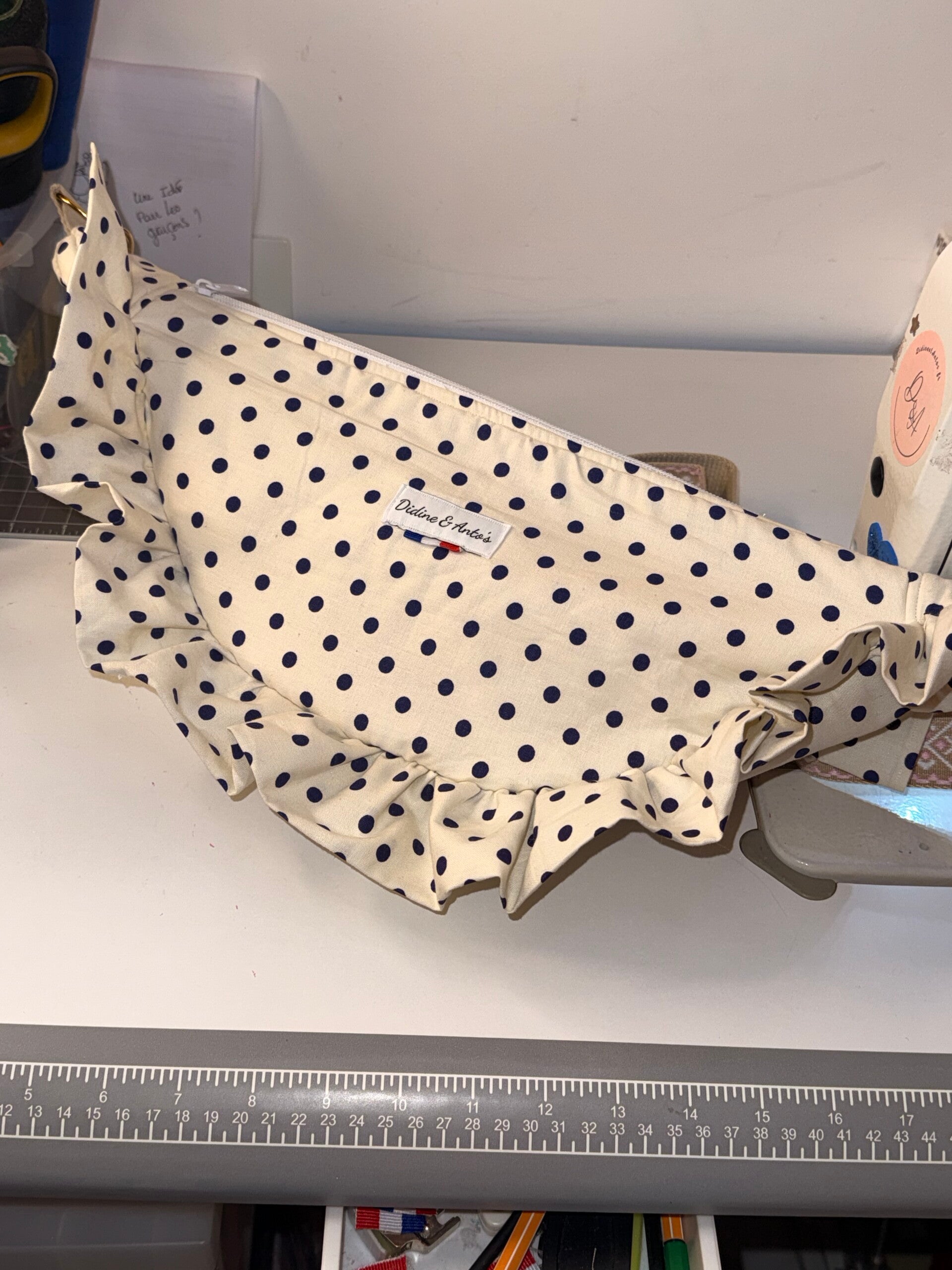 Ce sac en forme de demi-lune fait main est conçu avec une forme de croissant doux, avec des bords de volants délicat pour un look à la fois ludique et intemporel. Aux tissus de votre choix.