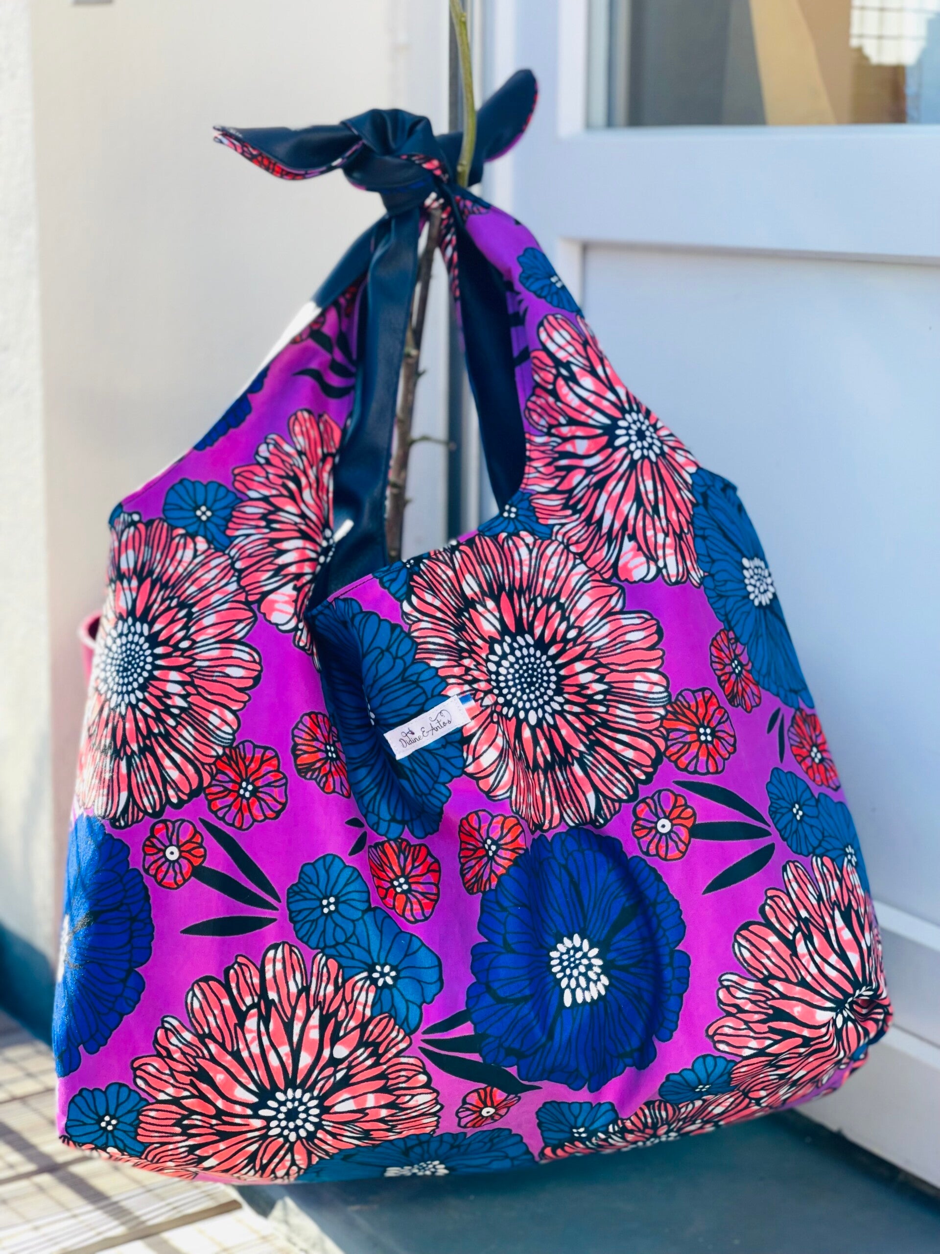 Sac réversible offrant 2 sacs en 1 - Tissu WAX - 100% coton - simili cuir, velours... aux tissus de votre choix pour un modèle unique